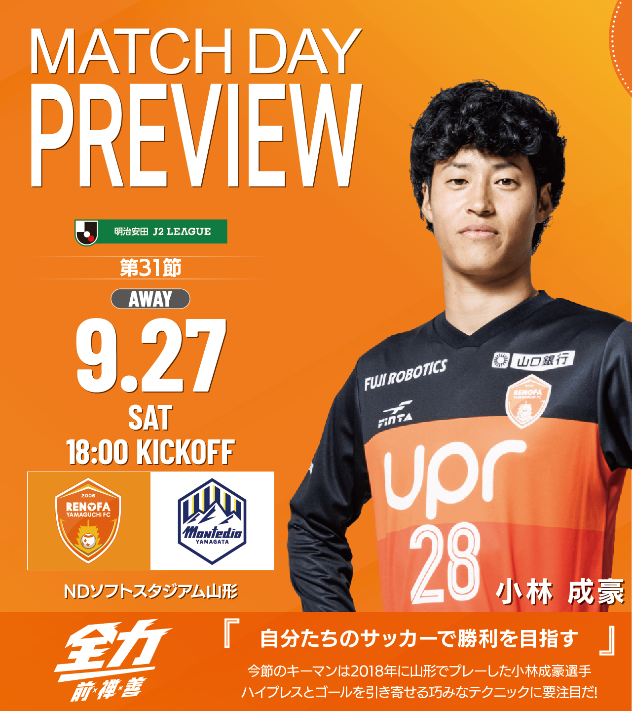 レノファ山口FCは今節、NDソフトスタジアム山形でモンテディオ山形と対戦する。J2残留に向けては残り8試合で勝点差8を縮める必要があり、今週も絶対に負けられない一戦だ。