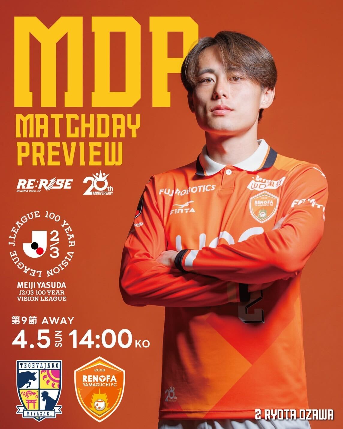 宮崎は昨季のJ3リーグ戦を4位で戦い終え、昇格プレーオフで鹿児島とFC大阪に連勝してJ2初昇格を掴んだ。今年のJ2・J3百年構想リーグは開幕から白星を積み重ね、前節の滋賀戦に敗れるまで90分決着での7連勝を挙げてきた。勝点21で首位に立っており、2位鹿児島に3ポイント、3位レノファに9ポイントの差を付けている。我らがレノファがここからさらに上に行くには、首位チームに土を付けないといけない。