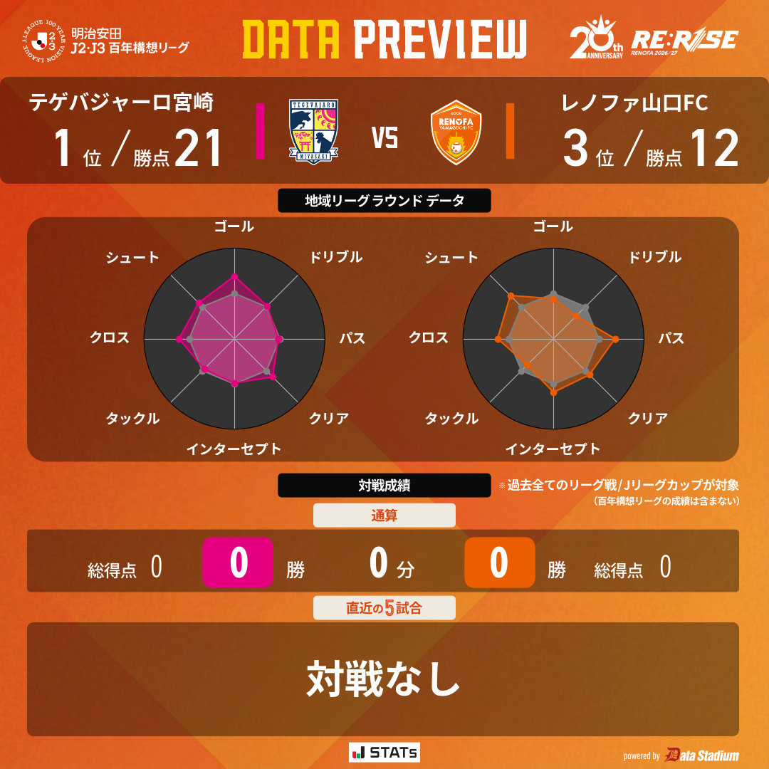 宮崎とは2026/27シーズンのJ3リーグ戦で対戦がないだけに、一層思い切って当たれる相手でもある。レノファが特別大会で上に行くにも絶対に負けられない相手であり、南国の熱風に負けない応援と心揺さぶるサッカーで2連勝を掴み取ろう!